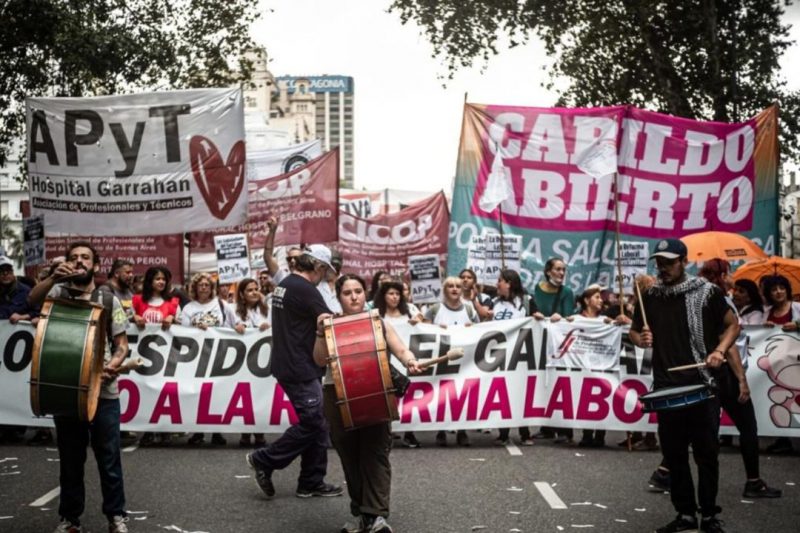 Angesichts der Sitzung, in der über die Abschaffung der Rechte der Lohnabhängigen abgestimmt werden soll, riefen wir vom MST in der FIT-U zu einer massiven Kundgebung um 12 Uhr mittags auf der Avenida de Mayo und 9 de Julio auf, an die eine riesige Demonstration des Kampfe wurde. Zusammen mit der Kolonne Cabildo Abierto, den Beschäftigten des Garrahan-Krankenhauses und mehreren Organisationen werden wir zum Kongress marschieren, um die vollständige Ablehnung des Gesetzes zu fordern. Wir sind überzeugt, dass wir nur gemeinsam, indem wir die Straßen erobern, und mit einem kontinuierlichen Kampfplan Mileis Reform und seinen gesamten Regierungsplan besiegen können. Es ist Zeit, die unabhängige Mobilisierung zu verstärken, um den Kapitulationspakt zu brechen, der im Parlament ausgeheckt wird.