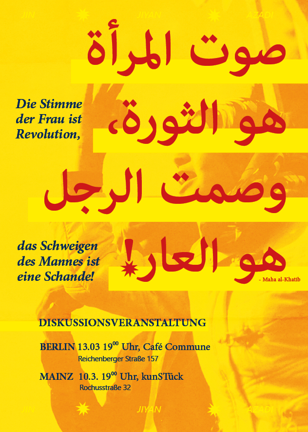 Im Vortrag und in der Diskussion wollen wir einen Einblick geben in die Rolle von Frauen. Und wir wollen die Frage diskutieren: Wie kann der Kampf um die Befreiung der Frauen erfolgreich sein? Wie kann er mit dem Selbstbestimmungsrecht des kurdischen Volkes und mit dem Kampf der Arbeiter:innenklasse verbunden werden? Wie kann eine sozialistische Revolution in Syrien und im gesamten Nahen Osten aussehen?